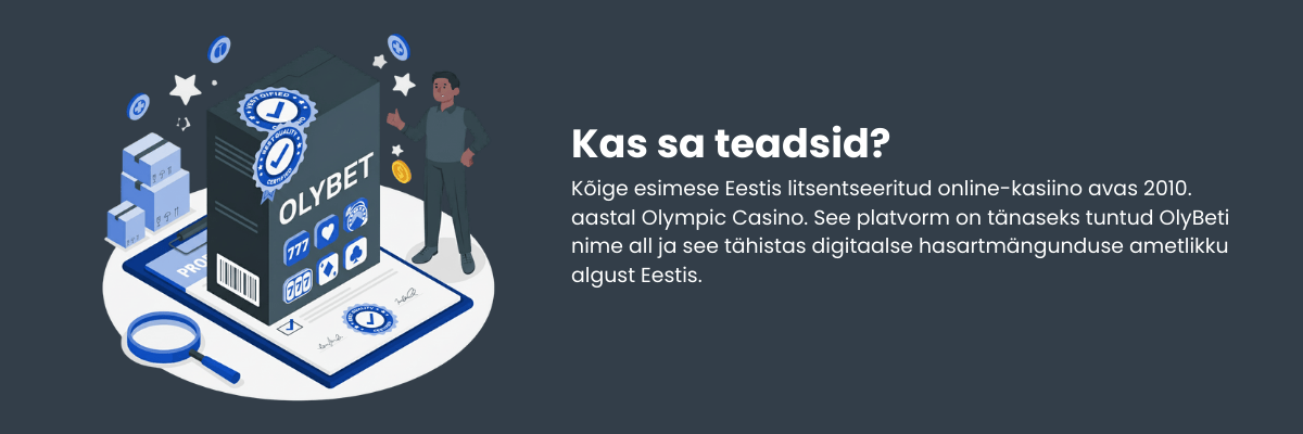OlyBet netikasiino on üks tuntumaid Eestis, mille tugevuseks on spordi- ja e-spordi panustamine. Lisaks on OlyBetil üle 30 aasta pikkune kogemus: bränd sündis legendaarse Olympic Casino digitaalse jätkuna ning kannab edasi sama usaldusväärsust, mida mängijad maapõhistest saalidest juba 1990. aastate keskpaigast mäletavad. Tegemist on ametlikult litsentseeritud operaatoriga, kelle taustal seisab Olympic Entertainment Group.