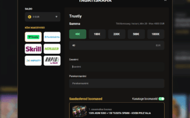 Sisse- ja väljamaksete osas sõltub valik sinu konto tüübist. Kiirkasiino-tüüpi kontoga mängijad saavad maksete tegemiseks kasutada maksealgatusplatvormi Trustly:
