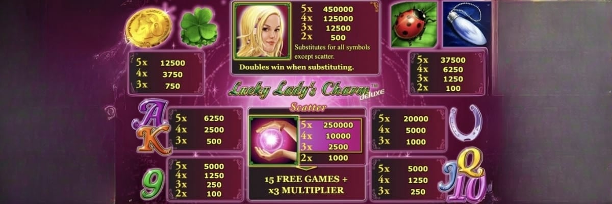 Основные символы и их выплаты в Lucky Lady’s Charm Deluxe: